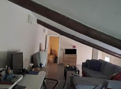 l'appartamento(civico 36) e composto da; al piano terra da un piccolo ingresso con porta blindata, che conduce al piano primo, ove a livelli differenti è possibile individuare: camera da letto, cucina disimpegno e bagno, tramite una scala a chiocciola conduce al sottotetto.