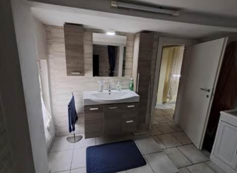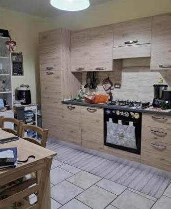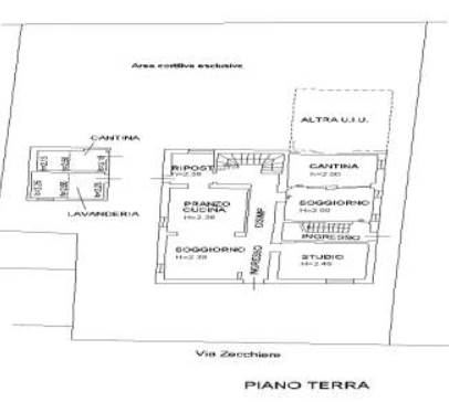 L'appartamento(civico 34)al piano terra, due ingressi di cui uno principale e l'altro di servizio, costituito da pranzo-cucina, soggiorno, studio, antibagno di ampie dimensioni, ripostiglio e scala di collegamento che conduce al secondo piano, ove sono presenti due camere da letto ed un bagno, oltre ad una botola che conduce al sottotetto, autorimessa (con doppio portone), lavanderia e cantina.